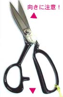 総左鋏についての注意事項総左鋏は柄(足)が左手用で、刃も逆(右手用を鏡で映したように)の仕様になっています。従って持ち手の力の掛け方が逆にな り、力の入れ加減によっては生地を挟んでしまい切れない場合があります。そのような場合は反対向きに(親指を押すような感じで)力を加えるようにして下さ い。 |
