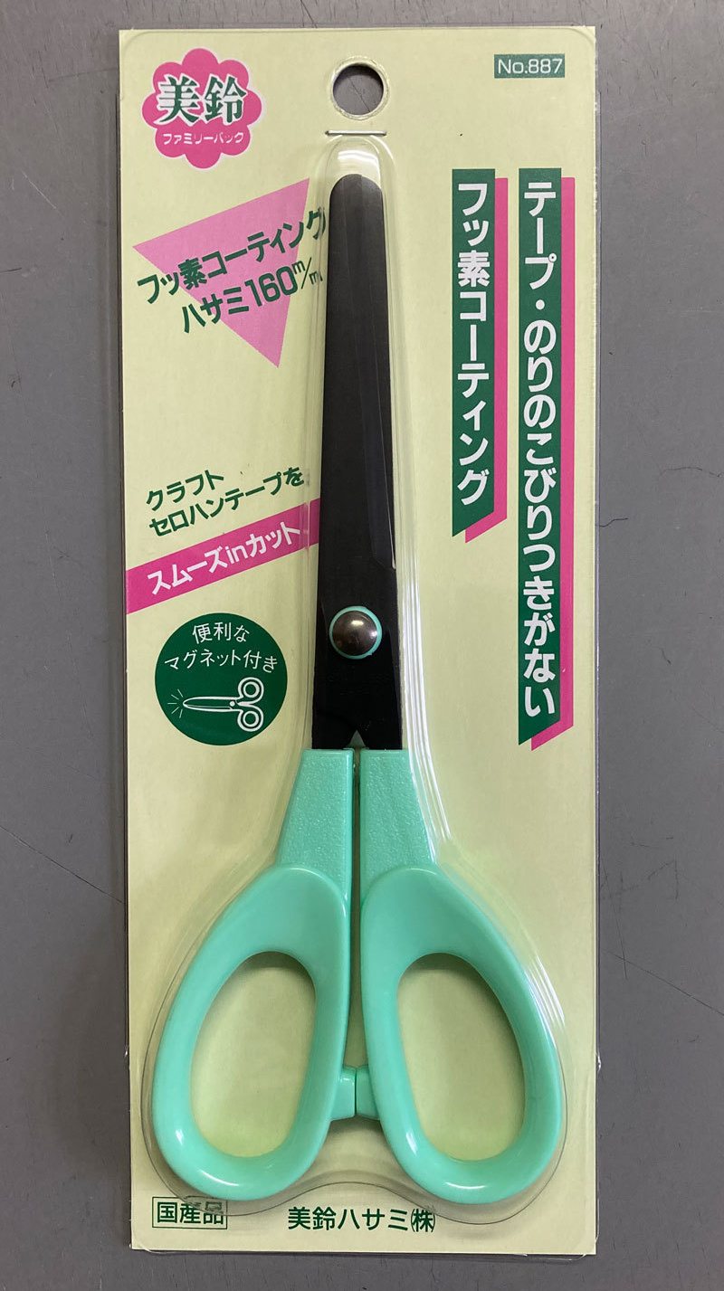 ●フッ素樹脂コーティングを施していますので、セロハンテープ、クラフトテープなどを切っても粘着物が刃先につきにくく、いつまでも、スムーズにカットできます。