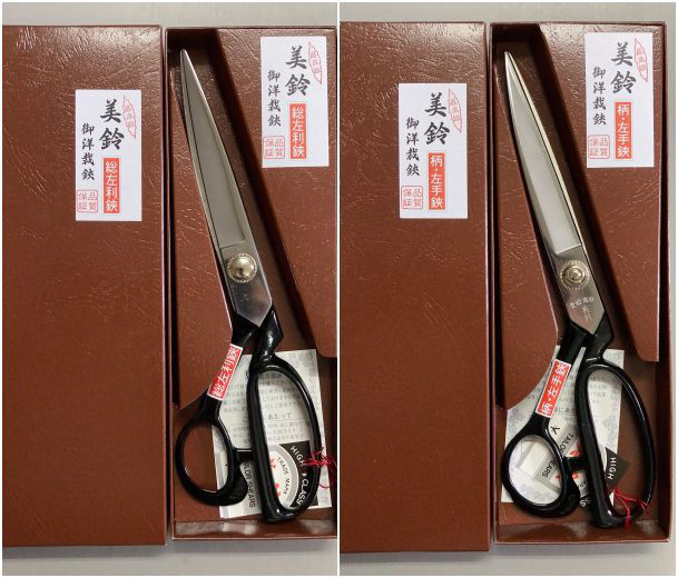 ●柄の型、刃の研ぎ、ともに左右を逆にした総左利。柄のみ左手用にした柄左利、ともに左利き専用はさみです。
