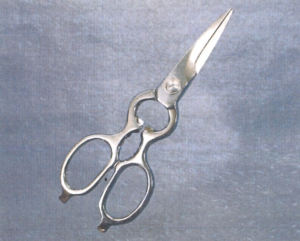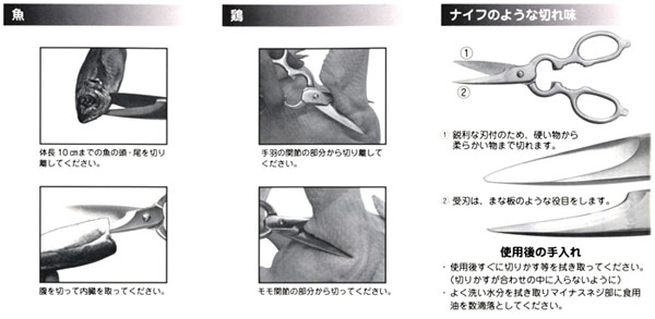シェフキッチン鋏は、片側の刃を受け刃湾曲にし、もう一方の刃を包丁の様な刃付けをすることにより、はさみ自体に包丁とまな板の役割を持たせました。