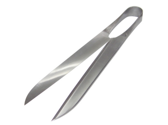 ●握り鋏の中で最も大きな”矢羽根切り鋏”。弓矢を作る職人さん(矢師職人)が使う特別な握り鋏で、長い刃で鳥の羽を一気に切り揃えます。