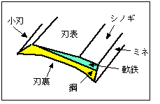 鋼と軟鉄の複合材で鍛造します。刃の裏(刃と刃が擦れ合う部分)のみ鋼で出来ています。